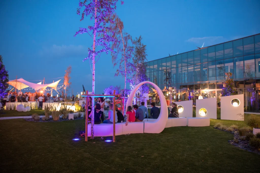 - Création de zones lounge, stands ou espaces VIP