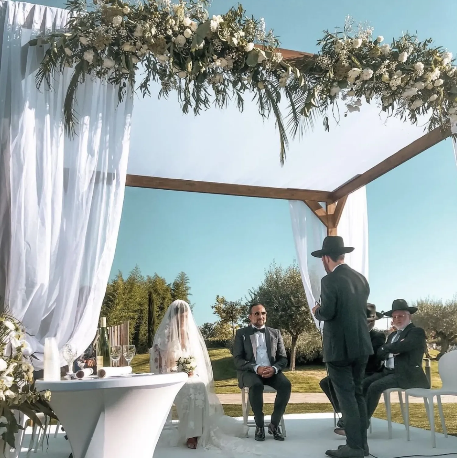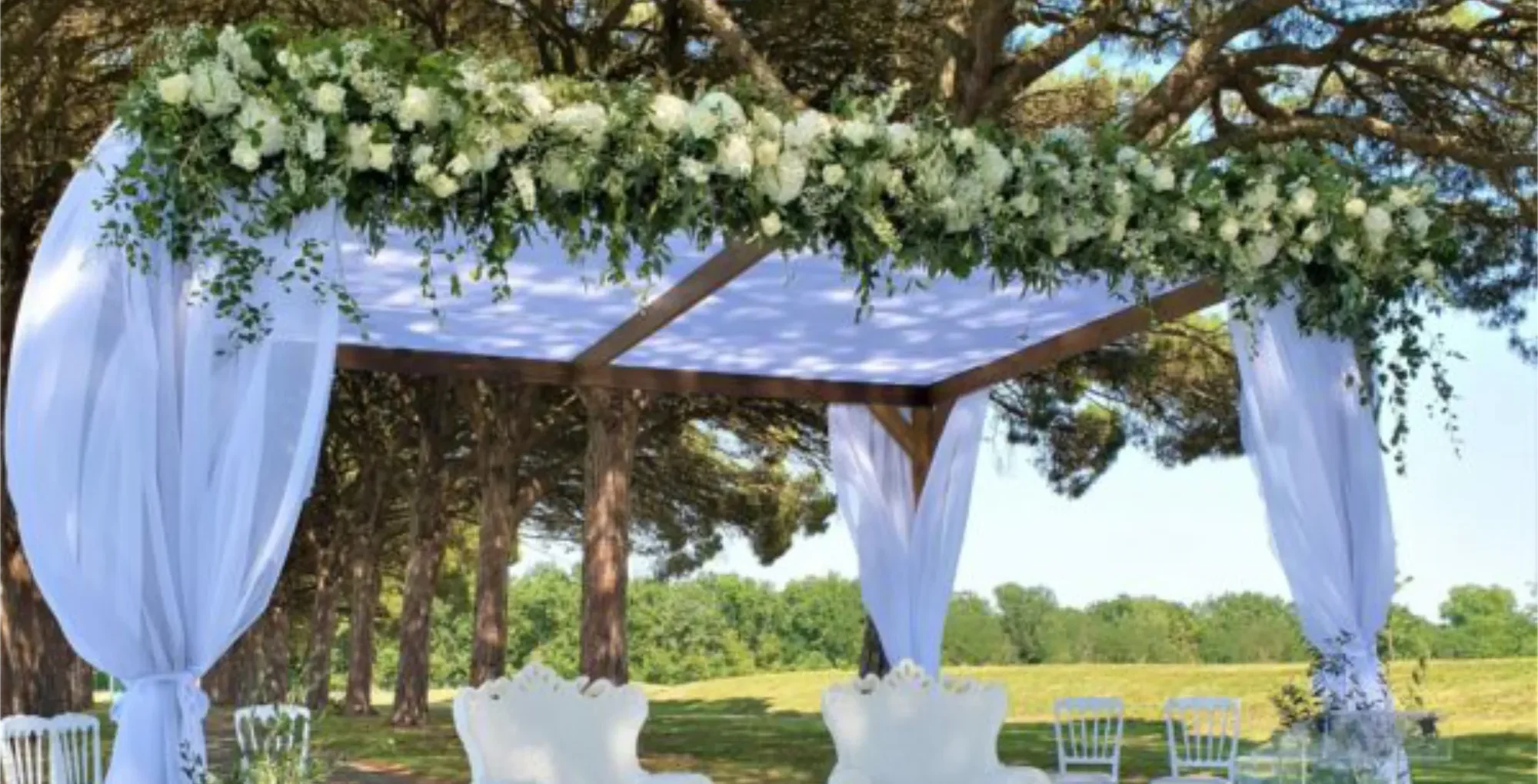 L’arche houppa en bois naturel avec voilage blanc est une structure élégante et symbolique, idéale pour sublimer vos cérémonies et moments forts. Conçue comme une arche rectangulaire en bois 4 x 3 m, elle offre une hauteur de 3 mètres, créant un cadre majestueux et poétique pour l’échange des vœux ou toute mise en scène cérémonielle.