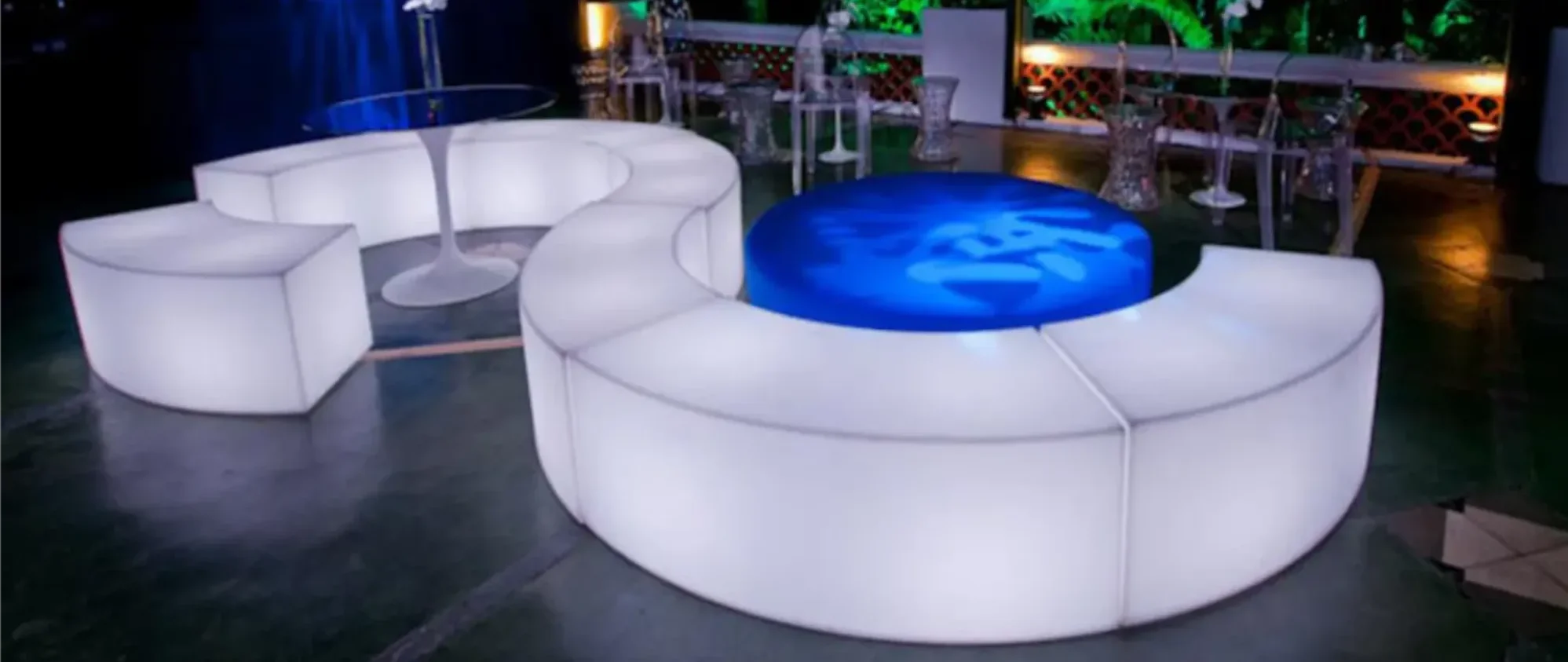 Disponible à la location à Toulouse, Montauban et dans toute l’Occitanie, le banc Snake est la solution parfaite pour structurer vos zones lounge tout en apportant une touche lumineuse raffinée à votre événement.