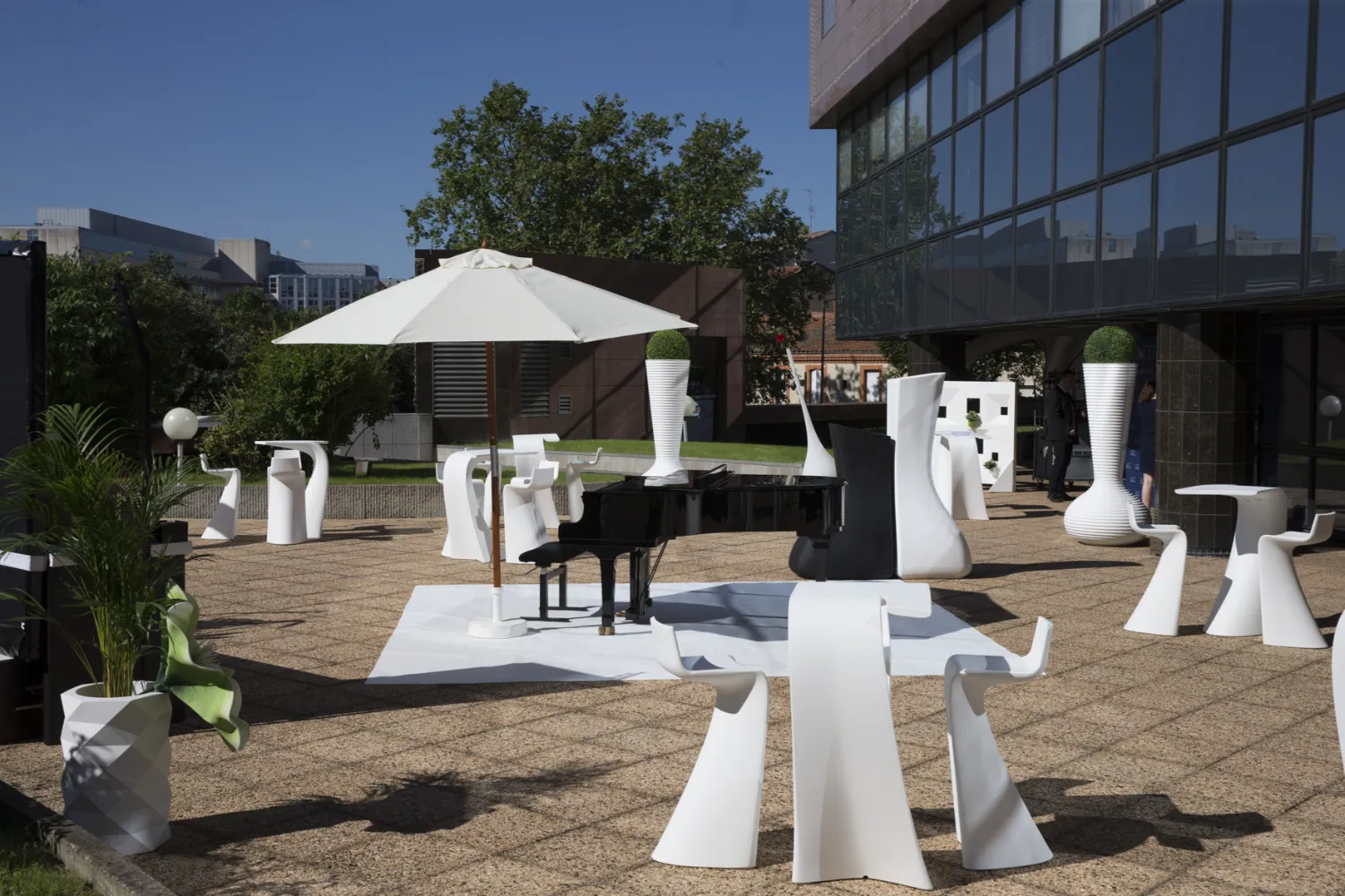 Disponible à la location à Toulouse, Montauban et dans toute l’Occitanie, le pot MOMA blanc est un incontournable pour des décors événementiels modernes, structurés et raffinés.
