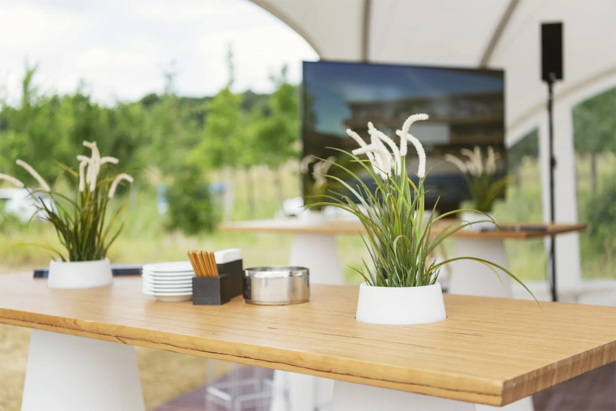 Polyvalente, elle s’utilise aussi bien en intérieur qu’en extérieur couvert et se combine harmonieusement avec du mobilier en bois, des matières naturelles ou des éléments plus design. Elle est idéale pour créer des ambiances apaisantes, structurées et cohérentes dans vos événements.