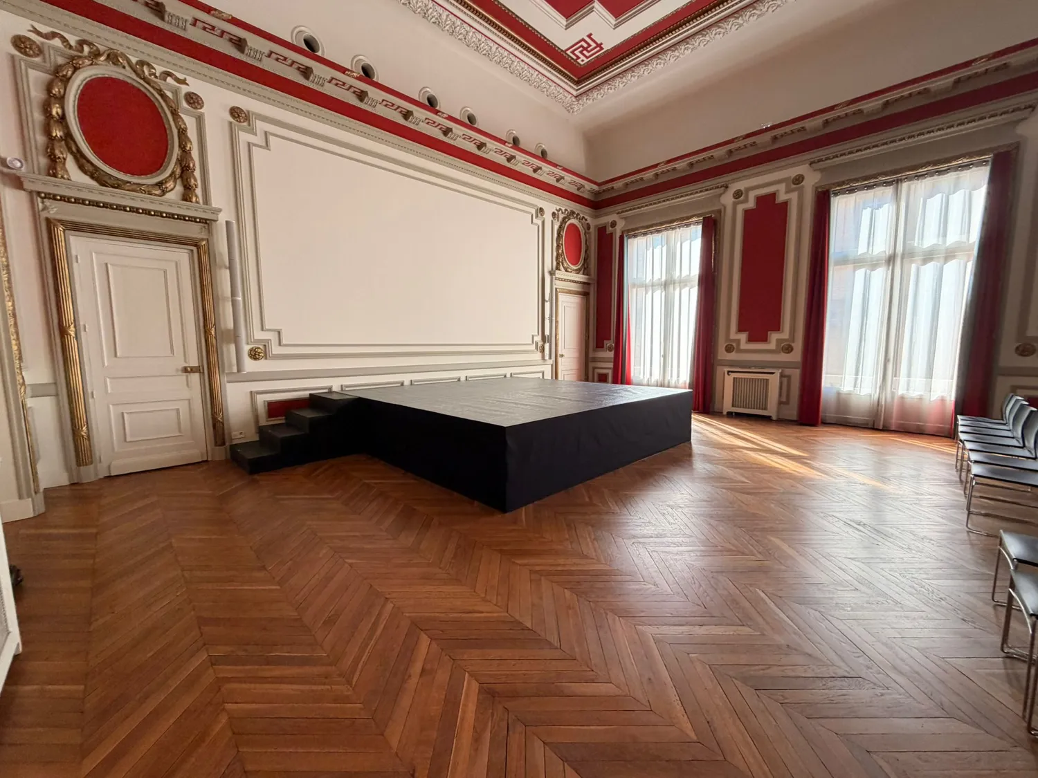 La scène événementielle fait partie intégrante de notre gamme de revêtements de sol et constitue un élément structurant essentiel pour vos événements professionnels et festifs. Conçue pour répondre aux exigences techniques et esthétiques des manifestations temporaires, elle permet de créer un espace surélevé parfaitement adapté aux prises de parole, performances ou mises en scène spécifiques.