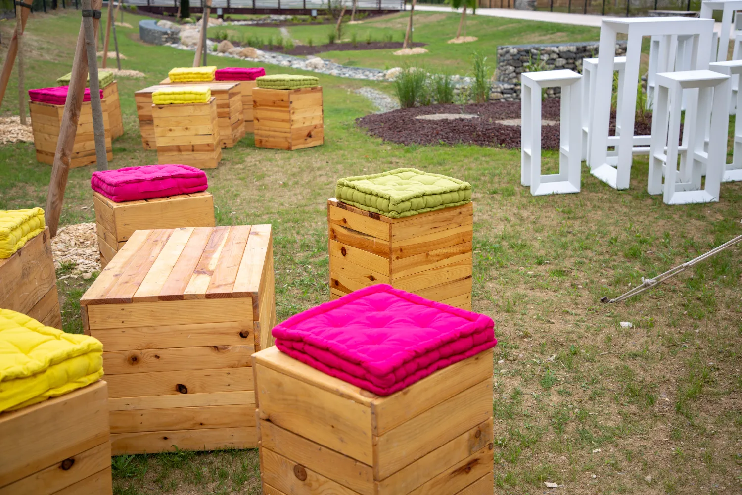 Pour un univers champêtre harmonieux, associez la table basse AUTHENTIC avec les poufs AUTHENTIC et les bancs AUTHENTIC. Ensemble, ils forment un ensemble lounge naturel et convivial, idéal pour des événements en plein air, des garden parties ou des espaces de détente.