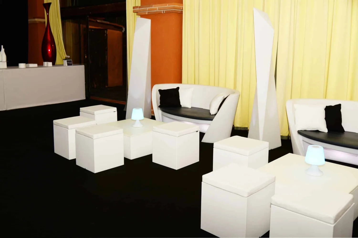 Robuste, stable et facile à intégrer dans n’importe quel décor, la table basse QUADRAT est pensée pour devenir un élément central dans la création d’un salon lounge ou d’un espace premium. Sa présence discrète mais élégante met en valeur l’ensemble du mobilier et renforce l’atmosphère professionnelle ou festive selon la scénographie choisie.