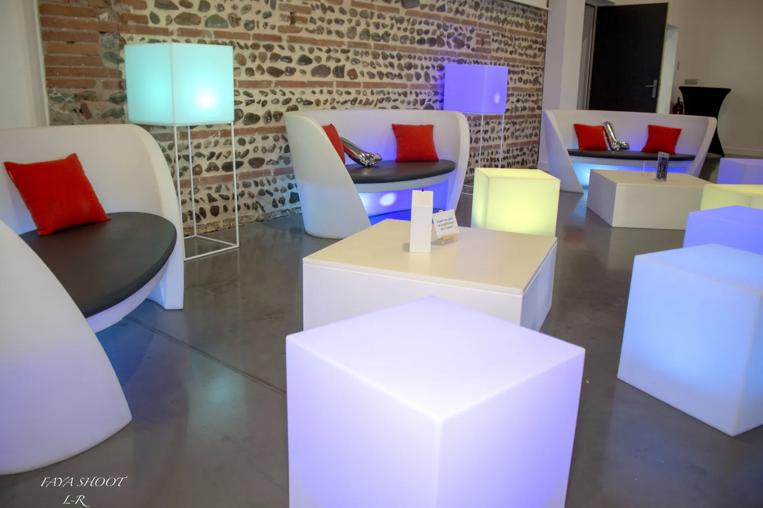 Grâce à sa sobriété visuelle, la table QUADRAT s’intègre dans une grande variété d’environnements : espaces lounge modernes, halls d’accueil, corners VIP, terrasses éphémères ou scènes dédiées à l’accueil des invités. Elle convient parfaitement aux événements recherchant un mobilier stable et élégant, qu’il s’agisse de salons professionnels, de cocktails d’entreprise, de mariages, ou de réceptions privées.