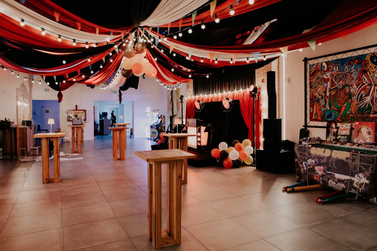 Cette table s’intègre parfaitement dans des univers champêtres, bohèmes ou naturels, que ce soit pour un mariage, une garden party, une soirée d’été ou un anniversaire d’entreprise. Elle se prête également très bien à des formats plus professionnels : salons, séminaires ou lancements de produit, où son style authentique contraste élégamment avec des décors plus contemporains. Lors d’un gala, d’une soirée thématique ou d’une célébration, elle devient un point de rencontre chaleureux propice aux échanges.