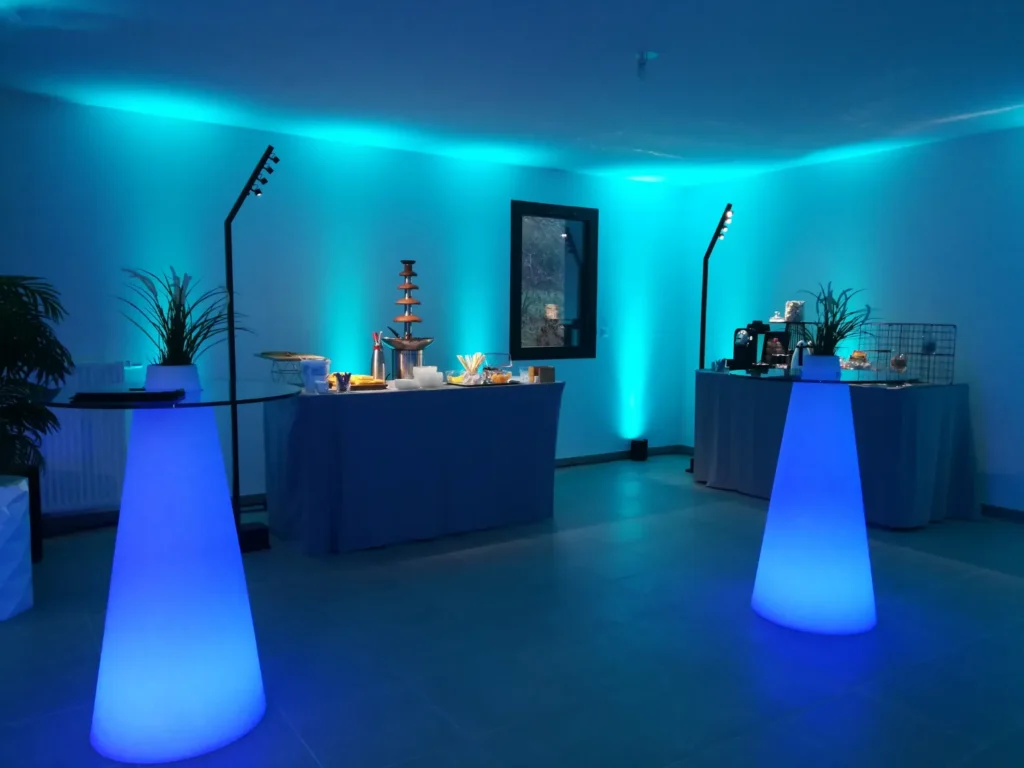 Une scénographie réussie repose sur l’harmonie entre création artistique et savoir-faire technique. L’éclairage, par exemple, structure l’espace et guide le regard. Le son, lui, renforce l’émotion. Quant au mobilier et aux décors, ils posent la signature esthétique de l’événement. PSB Lounge associe design contemporain et innovations technologiques : jeux de lumière dynamiques, mapping vidéo, structures autoportantes et effets immersifs. L’objectif est simple : offrir à vos invités une expérience qui fait vivre la magie des fêtes avec élégance et originalité.